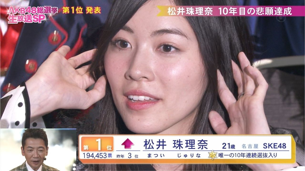 AKB48総選挙 1位は松井珠理奈になるも「鼻毛出てる」「鼻くそみえた」と叩かれる