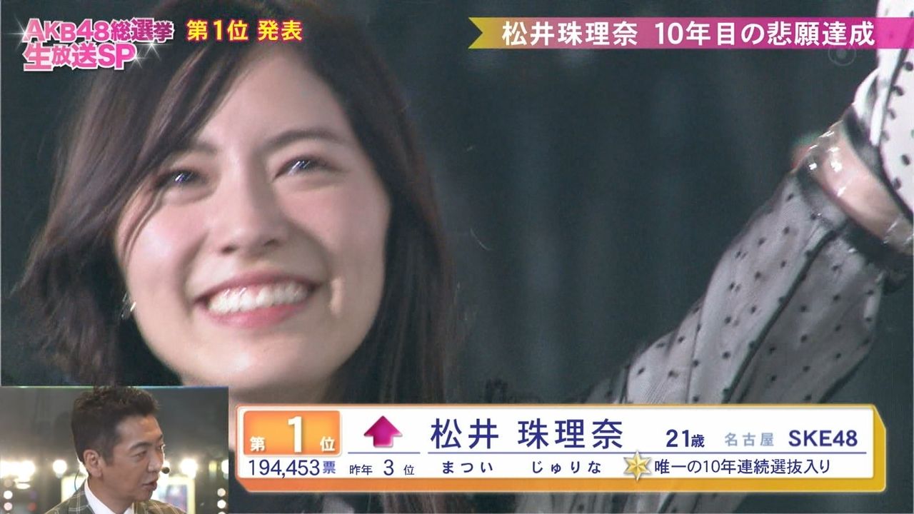 1位:松井 珠理奈(SKE48 Team S)194453票